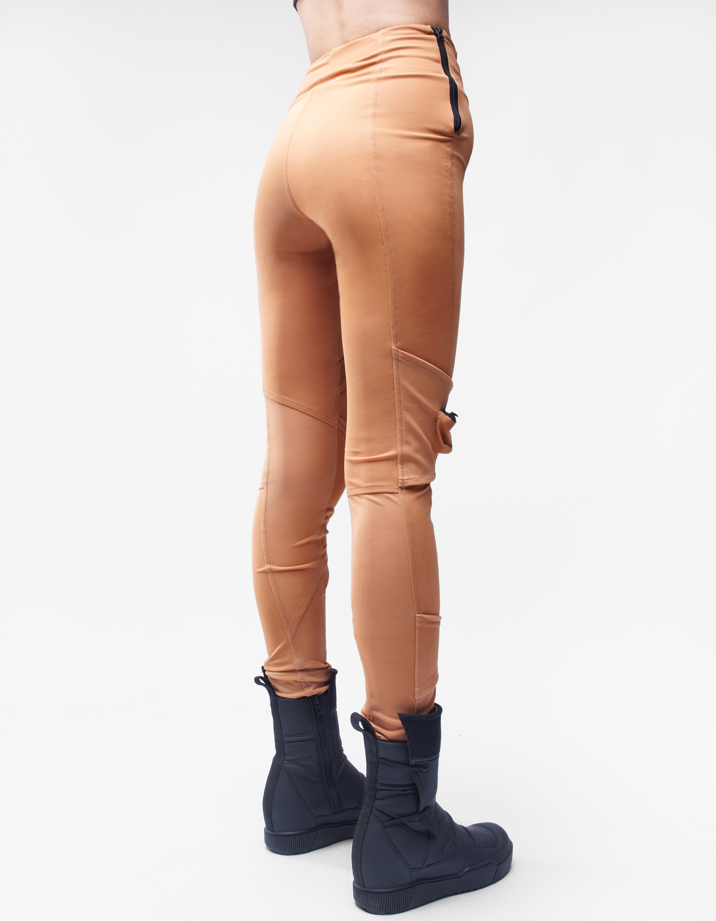 detailed high waist fit trousers with pad elementsclosing by zipper, zipped pocketsmooth cool touch