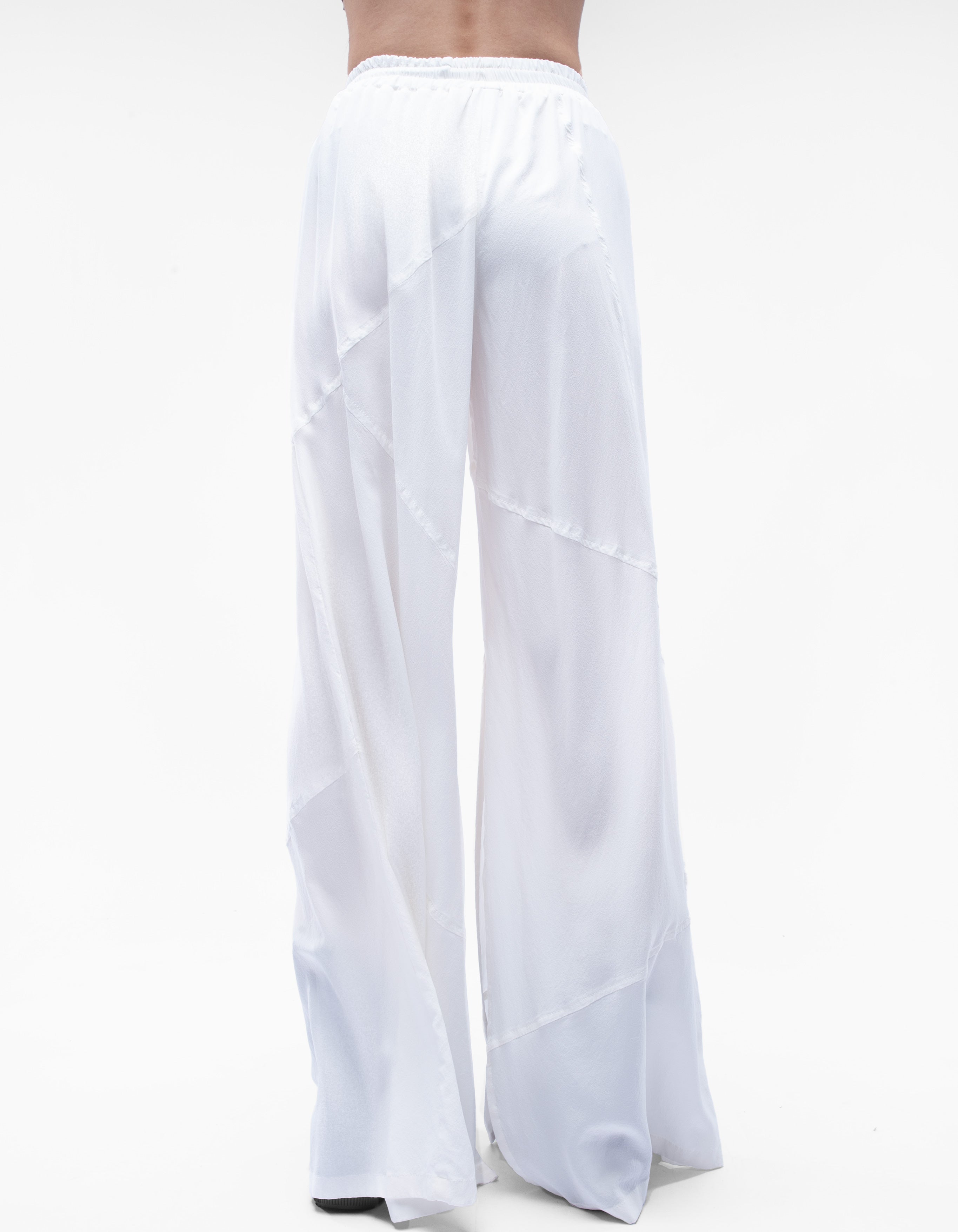 The trousers are slightly transparent.The length of the trousers is 104 cm from the high waist.