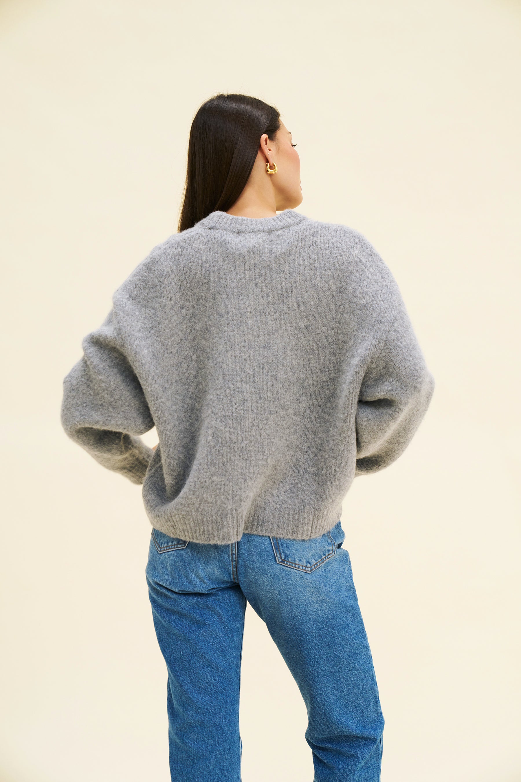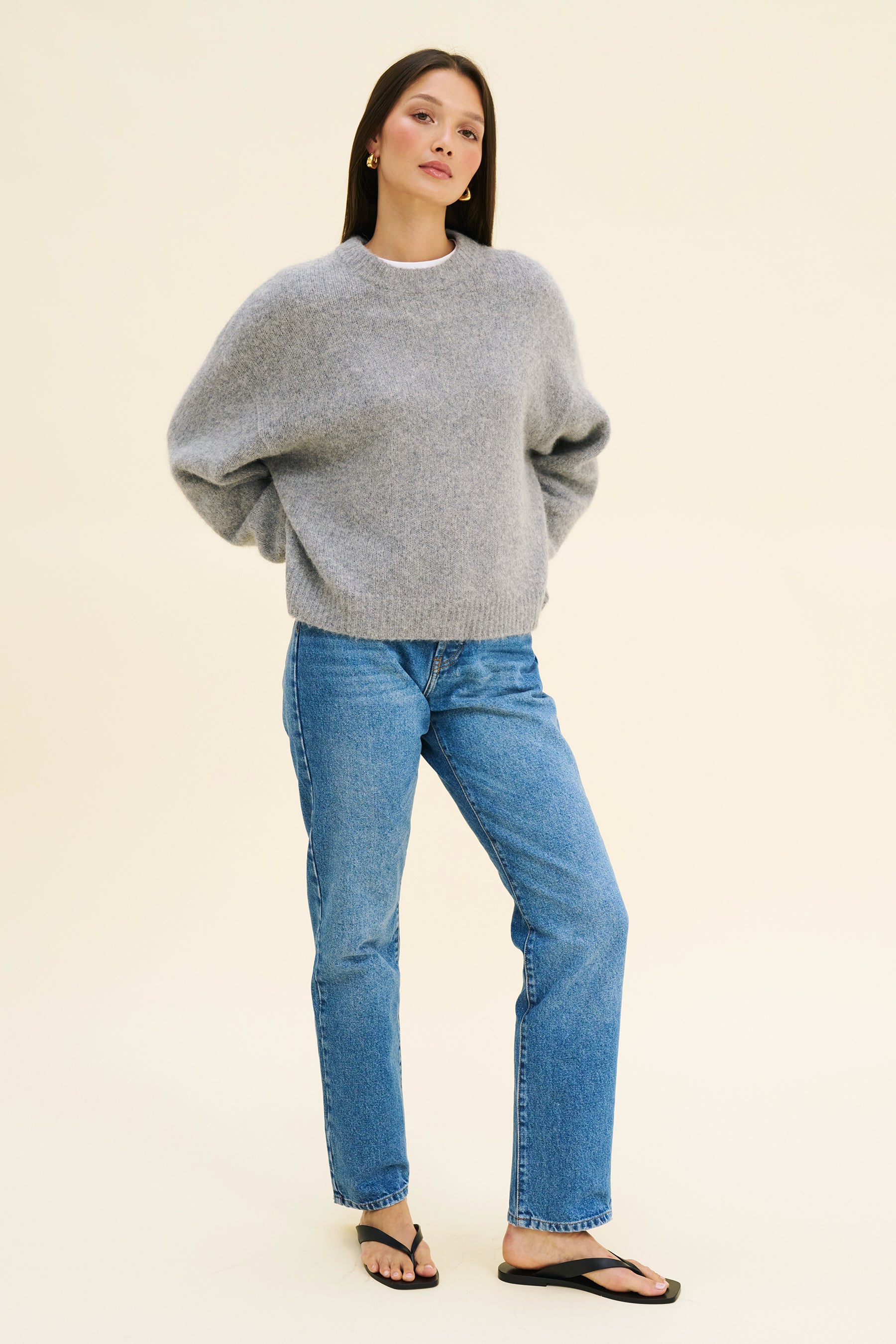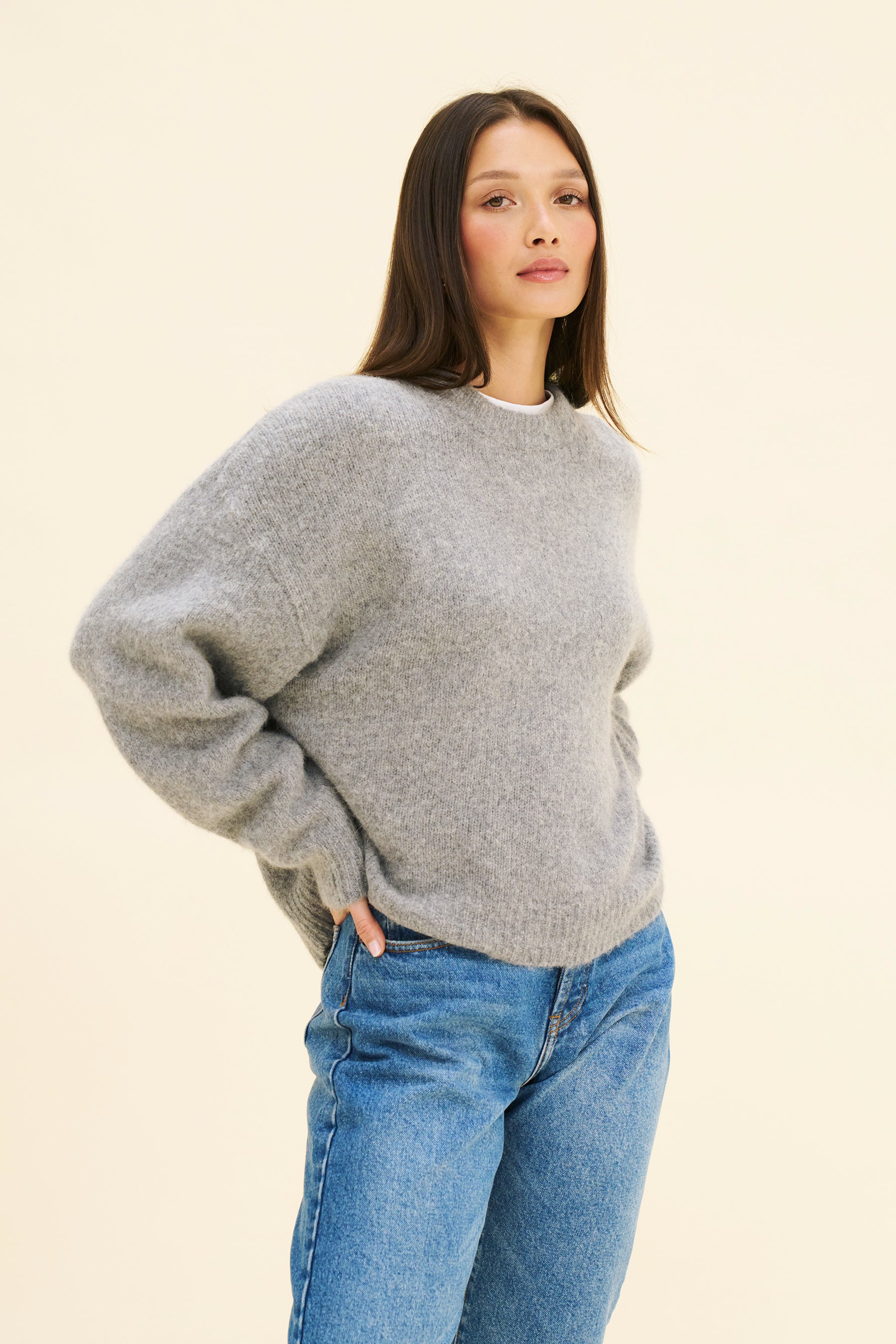 The Aurora is so fluffy and soft. An incredible blend of Yak, Alpaca and Merino. A simple crew neck with boyfriend fit. Model wears size M, she is 5'8.