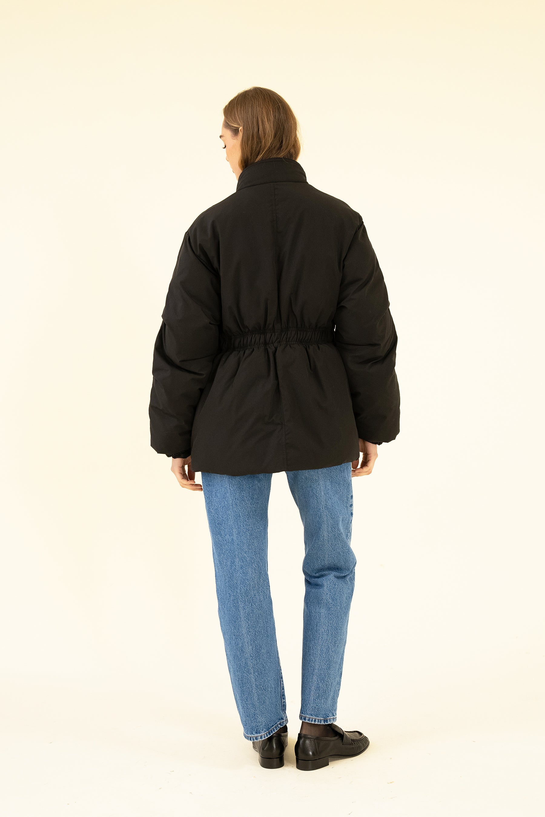 An ode to the 80's, our new version of Cadence is made from Recycled Polyester and is thigh length. She cinches at the waist with an adjustable cord, is so warm and comfortable and has a double ended zip opening.