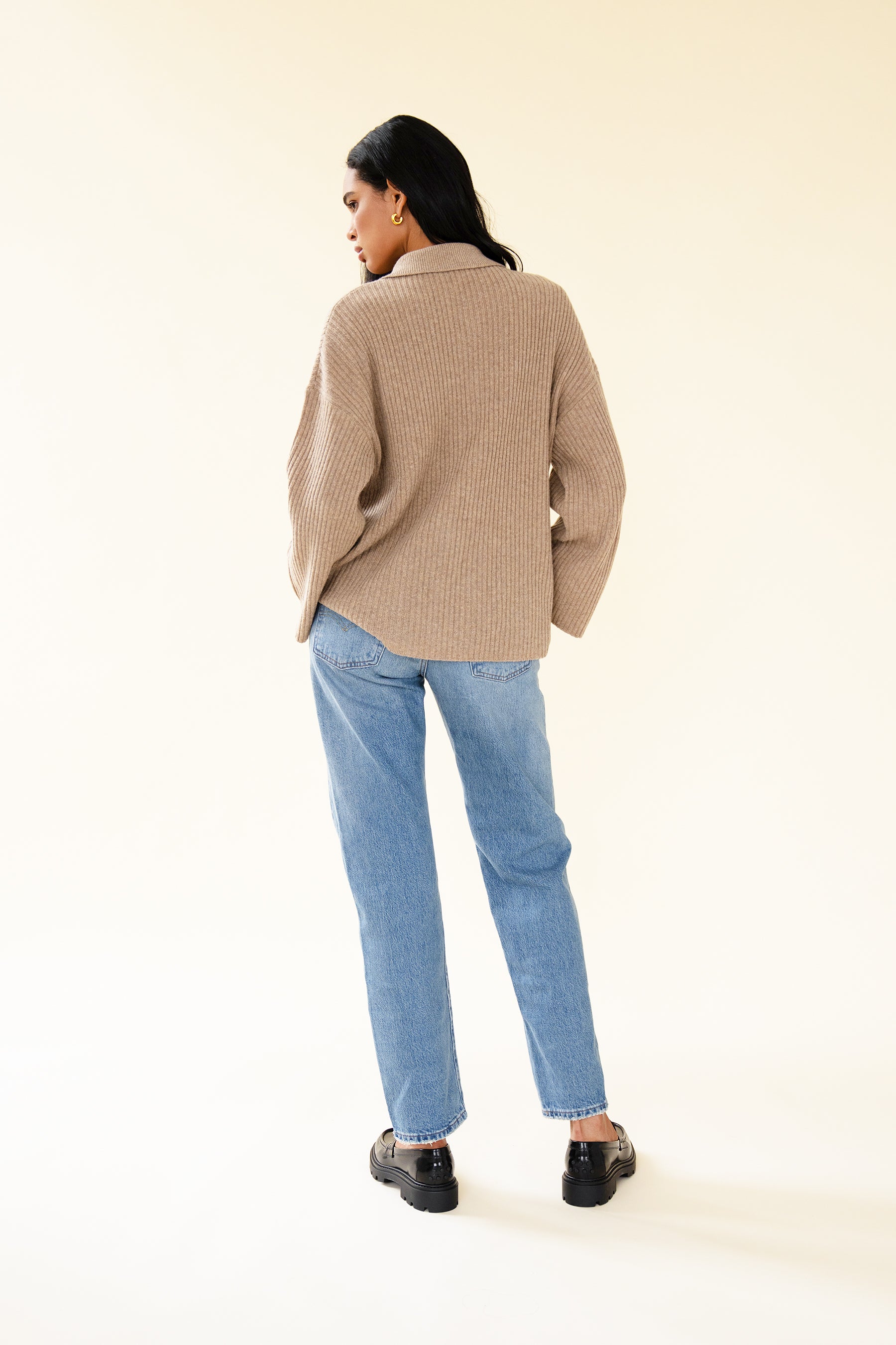 The Clio is the ultimate relaxed knit, she has a dropped shoulder and oversized fit with button front and collar. She's made from 100% RWS certified Merino Wool. Model wears size S, she is 5'10.