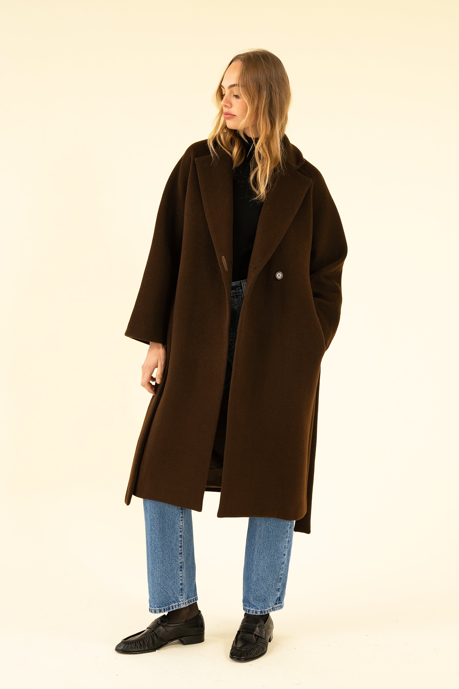 The Mabe is the perfect oversized, full length classic wool coat. Layer her over anything this winter to keep you super warm. She's made from 100% heavy wool. Model wears size S and is 5'9 / 180cm.