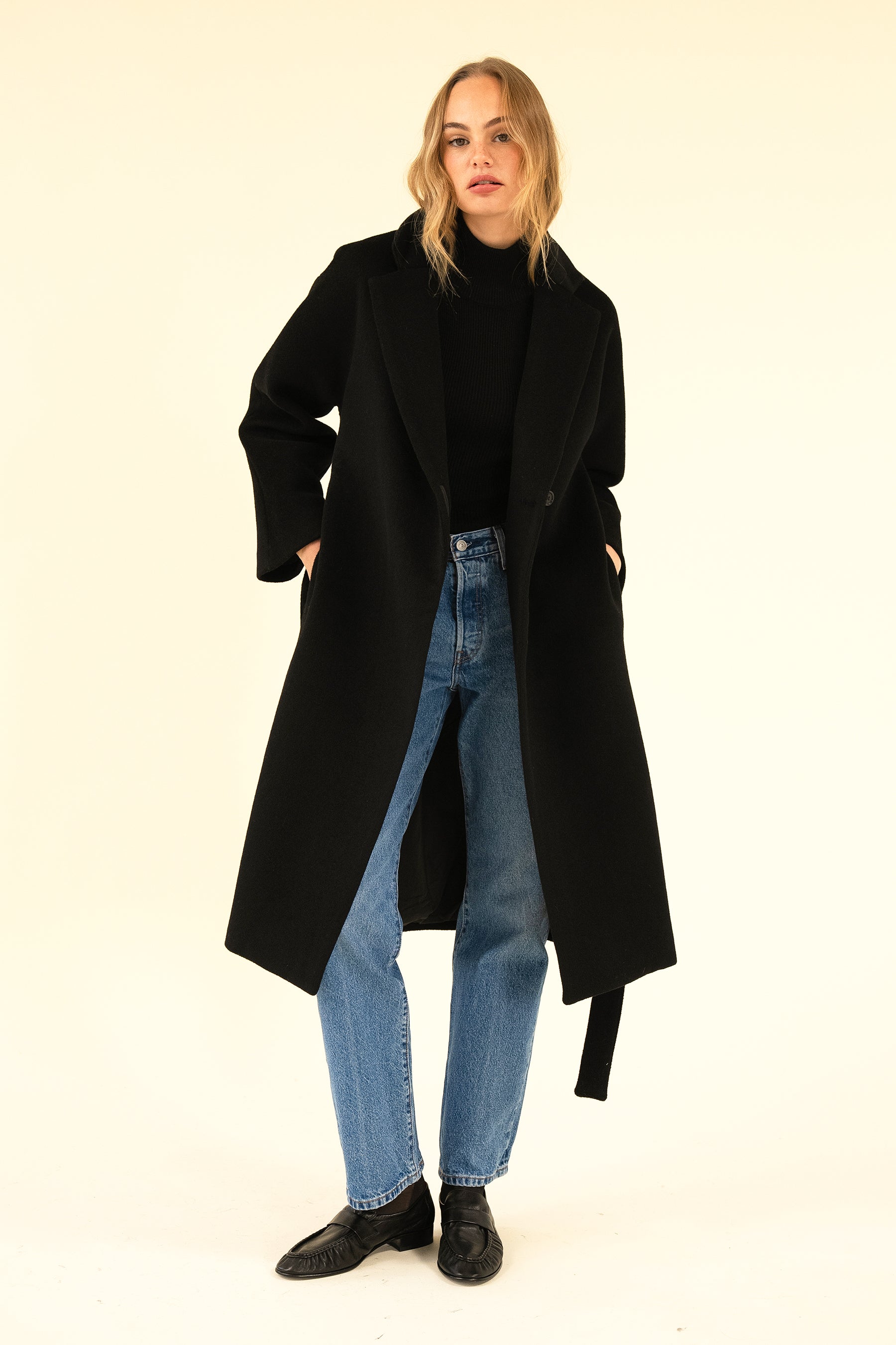 The Mabe is the perfect oversized, full length classic wool coat. Layer her over anything this winter to keep you super warm. She's made from 100% heavy wool. Model wears size S and is 5'9 / 180cm.