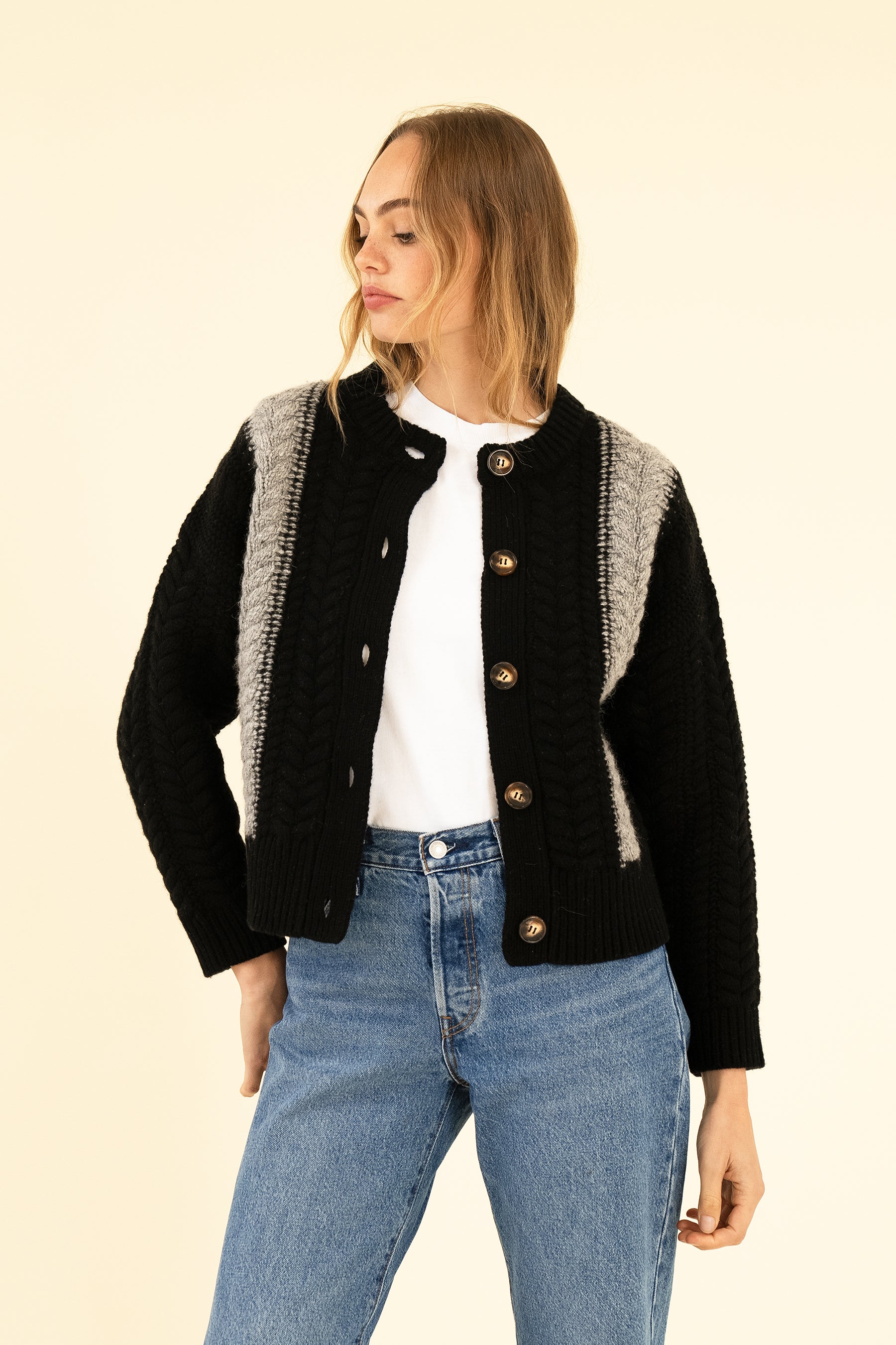 Our classic Sloan cardigan, made from RWS Merino wool, recycled Nylon and Alpaca for the highest quality knit. Wear her fully buttoned or over a fresh white tee for a clean fit with your favourite jeans. Model wears size S and is 5'9.