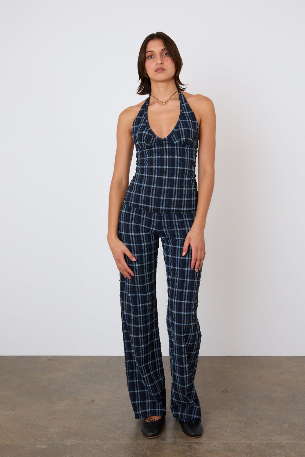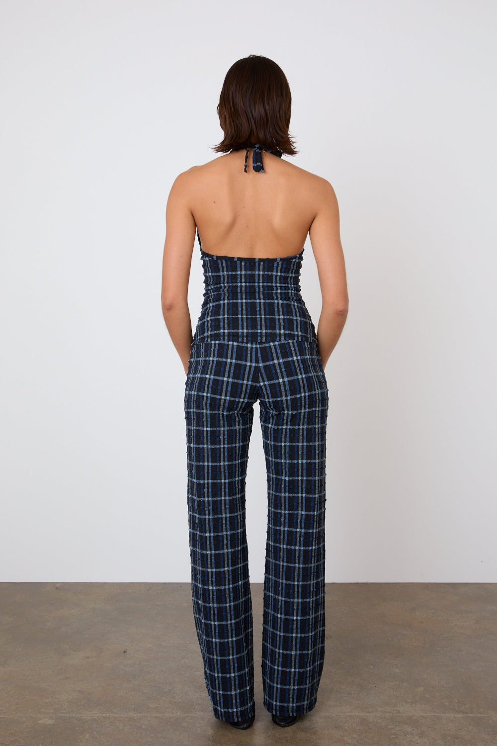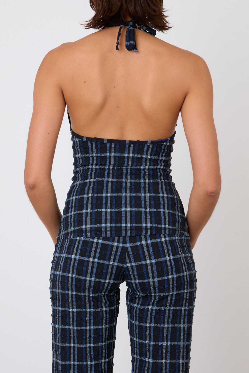 A sporty twist on a classic tie-up halter, the Cindy Halter Top is cut from recycled seersucker in our new Selvedge colourway—a deep blue check inspired by dark denim selvedge. The adjustable tie at the neck allows for an adjustable fit.