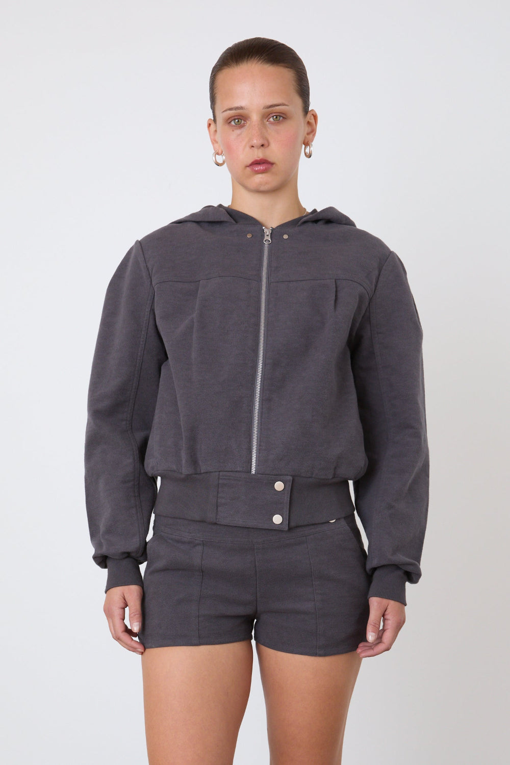 A modern twist on 1950s beatnik style, The Edie Bomber features brushed moleskin, and metal-toned hardware in a relaxed, boxy fit. Pairs perfectly with The Edie Shorts and Edie Skirt.